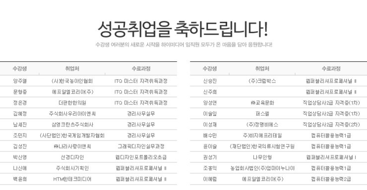 하이미디어컴퓨터학원 노원캠퍼스 2014년 12월 성공취업자 명단입니다.