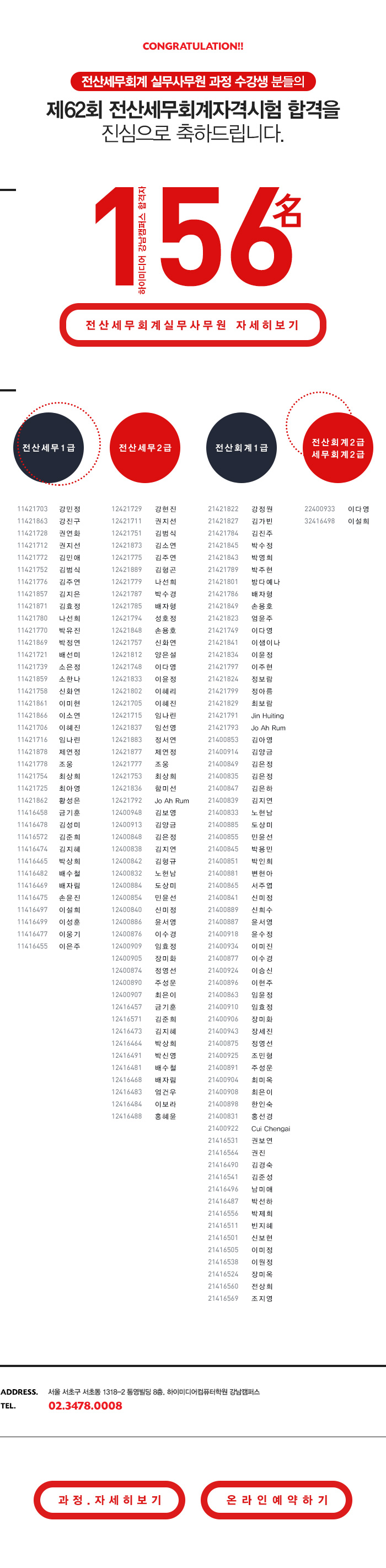 [강남캠퍼스] 제62회 전산세무회계자격시험 합격자