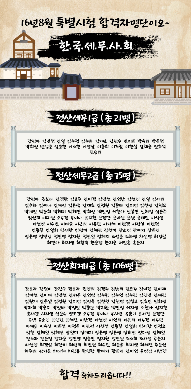 [종로캠퍼스]16년8월 한국세무사회 특별시험 합격자명단